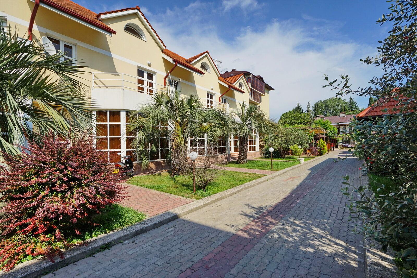 Гостевой дом "Бриз" — это оазис спокойствия и комфорта, где южное очарование переплетается с европейским сервисом. Прибывая сюда, вы сразу же окунетесь в атмосферу безмятежности, ощущая тепло южного солнца и наслаждаясь ароматами экзотических растений. Территория гостевого дома — настоящее произведение ландшафтного дизайна. Изящная тротуарная брусчатка гармонично сочетается с пышной зеленью южных растений, среди которых величественно возвышаются стройные пальмы, создавая неповторимый средиземноморский колорит. Это место, где каждый уголок располагает к отдыху и созерцанию. К услугам гостей предусмотрена удобная автостоянка, что снимает заботы о парковке. Для гурманов открывает свои двери уютное кафе-ресторан, где можно насладиться изысканными блюдами местной и европейской кухни. Прохладу в жаркие дни подарит освежающий бассейн, а многочисленные места для отдыха, оборудованные удобными шезлонгами и столиками, приглашают расслабиться и забыть о повседневных заботах. Номера в гостевом доме "Бриз" соответствуют высоким европейским стандартам. Каждый номер тщательно продуман, чтобы обеспечить максимальный комфорт своим гостям. Здесь есть все необходимое для полноценного отдыха: современная мебель, кондиционер, телевизор, холодильник и Wi-Fi. Здесь вас ждет уют и домашняя атмосфера, прерываемая лишь легким шумом прибоя, который доносится с моря. Благодаря своему идеальному расположению, всего в 3-5 минутах ходьбы от ласковых вод Черного моря, гостевой дом "Бриз" предлагает своим гостям возможность насладиться пляжным отдыхом в полной мере. Забудьте о долгих переходах – море буквально у ваших ног.