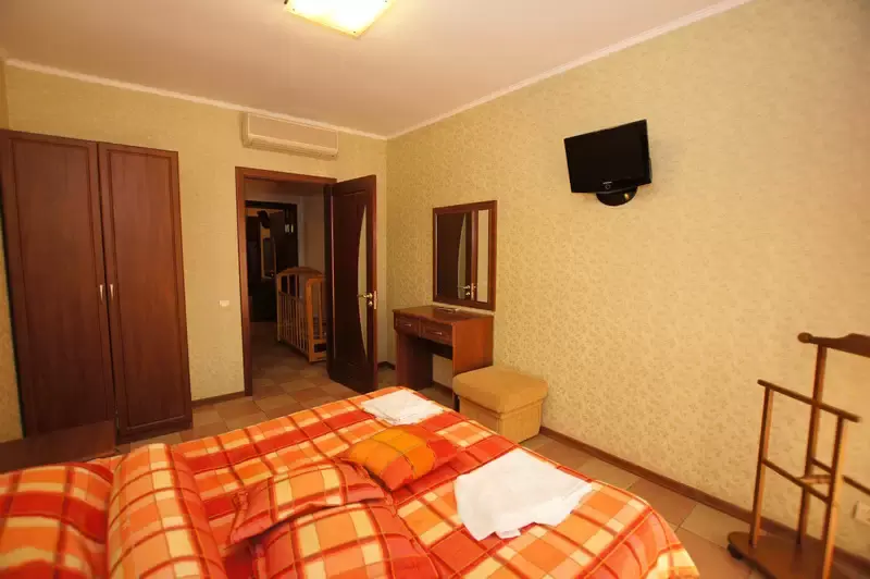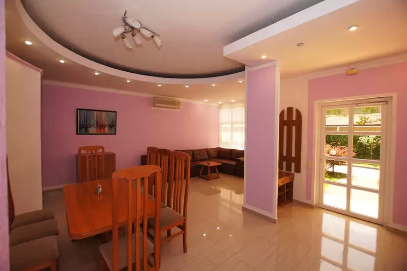 Двухуровневый коттедж под ключ. Первый этаж; большой холл, кухня, диваны, санузел, кондиционер, ж/к телевизор. Второй этаж; 3 спальни, санузел, ж\к теелвизор, кондиционеры.